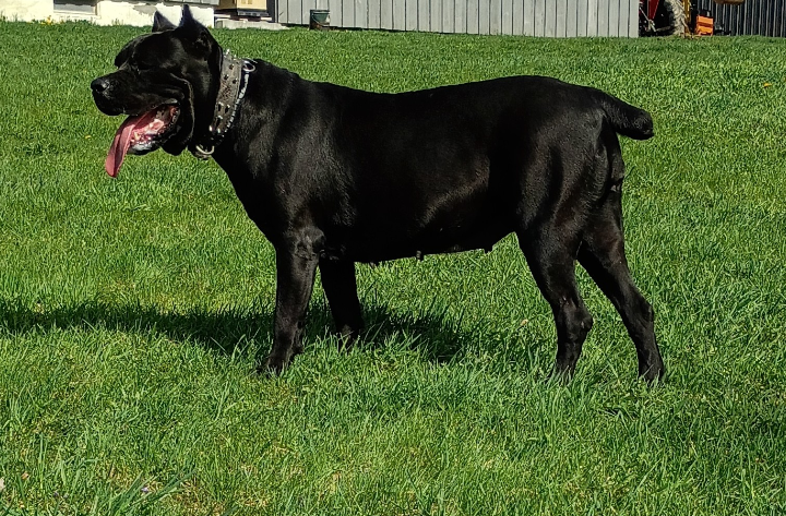 Warhammer’s Iron Maiden turn 2 in June 2025. She is a tall, rectangular daughter of Warhammer’s Son of Suns SONNY. She is due to breed next heat cycle to Capo. She is Double Black. She is being raised by a sister kennel just starting out and we have gladly taken under our wing. Forza Cane Corso out of Saratoga NY. This AKC pairing should produce some stellar offspring!